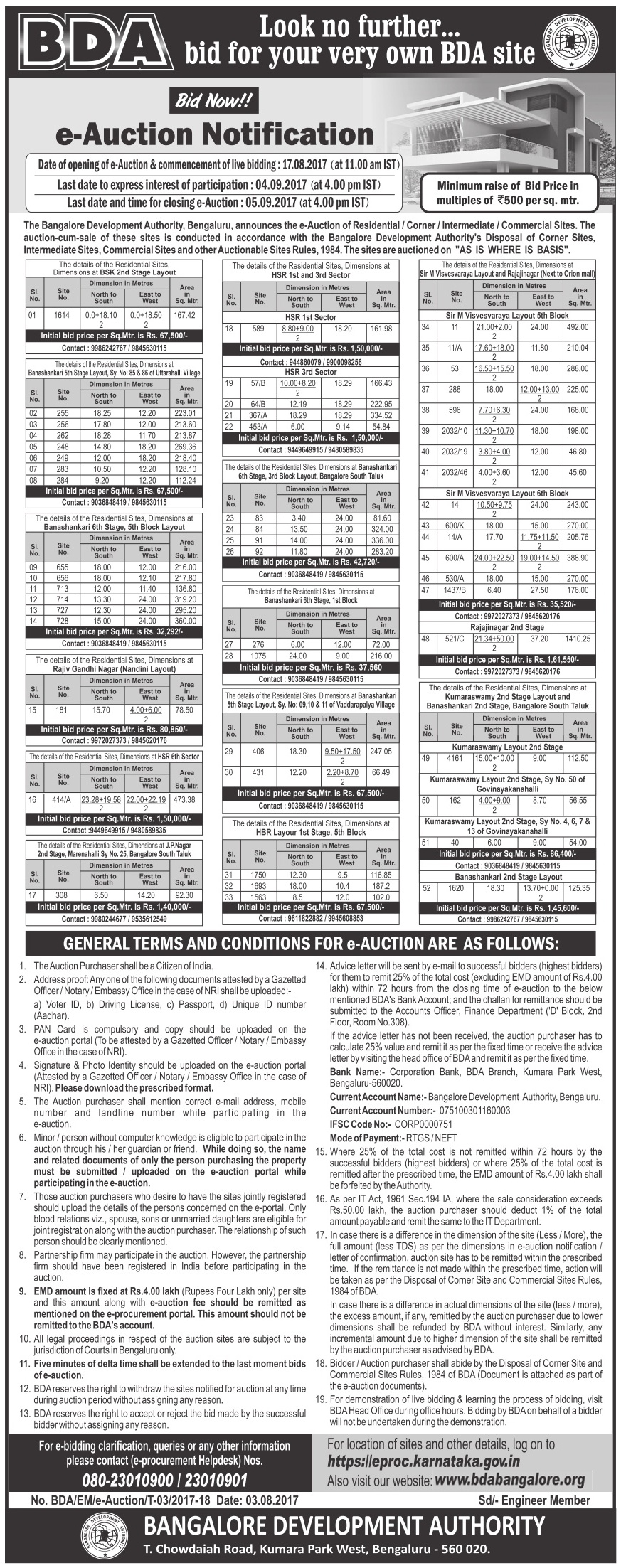 2. In some of the previous Auctions, There were no takers for couple of sites due to the highly inflated price BDA had