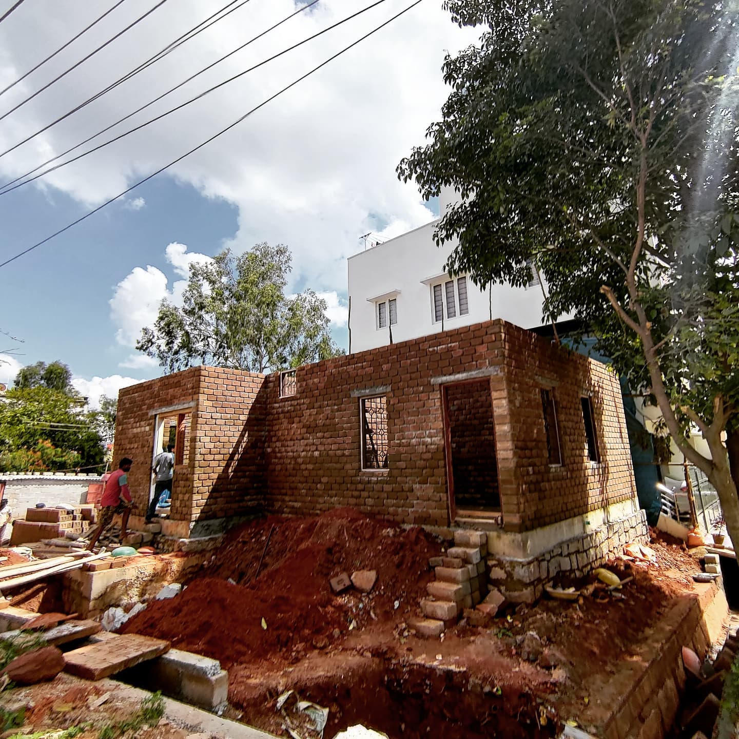 Moved with Wall construction using the fully cured & ready to use CSEB Bricks. Even though the Wall Construction work looks very similar to the regular construction work, we need to give more attention to the placement and alignment for each & every bricks used. Reason is as we don't do cement plastering for these walls, maintaining brick alignment & uniformity is of utmost priority, else the any offset can look abnormal or ugly in future & also the rework at a later state is very expensive or very time consuming. Hence its bit time consuming work. But it saves a lot of time & money by eliminating the Cement Plastering and the Toxic painting(First Time as well as repeated painting at an average of 5-6 years in the future) during the finishing stage.