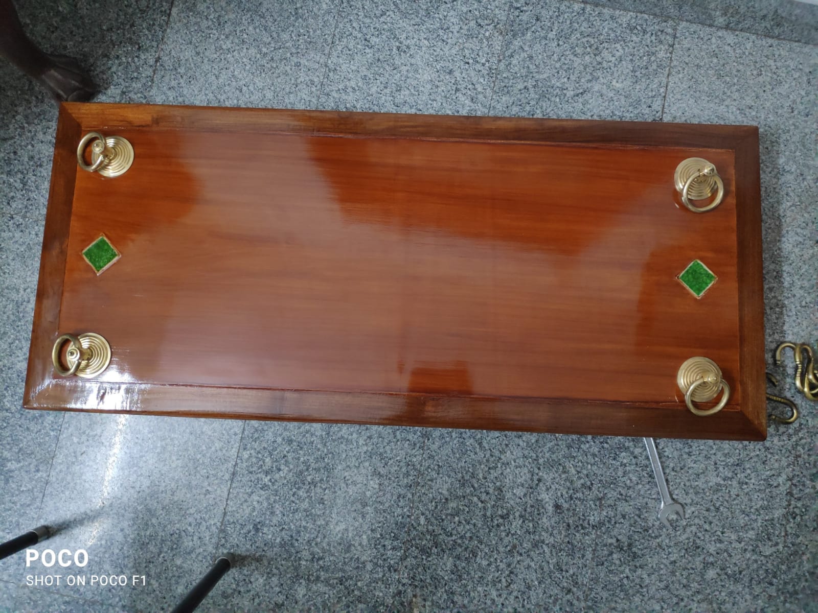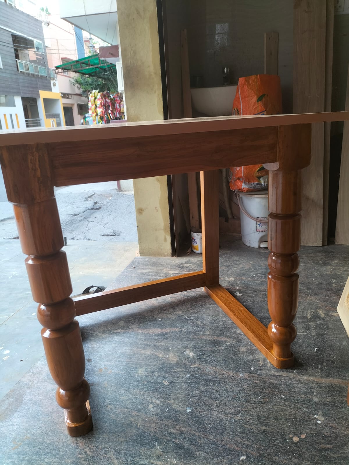 I have not made to make a separate Pooja Room in order to avoid additional walls inside, which also requires Separate walls, doors and occupies space, which hurdles natural light and ventilation, and also may not be useful for any other way. Hence I planned for an open pooja space using Wooden Pooja Mantap. At the same time, I was looking for thinking of disposing my old Teak wood Dining table of at least 35 years Old. While discussing these points with my architect, They came up with upcycling of my Dining table to fulfill my requirement.