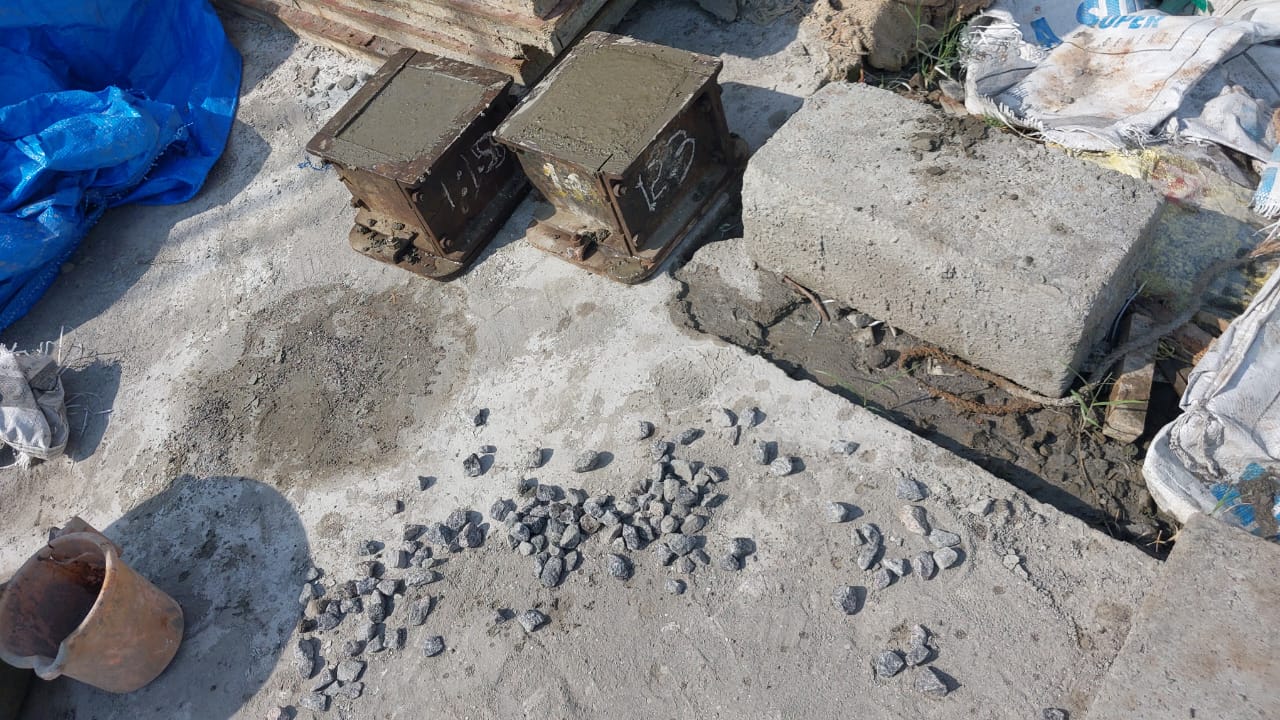 As next week is slab, I called the Ultratech team and insisted on casting a concrete cube for the compression test to know the correct ratio of concrete mixing. The Ultratech team visited my site and casted two cubes of different ratios, i.e., 1:1.5:3 and 1:2:3, and maybe by next Thursday I will get to know the results of seven days of compression testing. I also requested that my architect be present for the entire concrete process on that day, because gang members usually follow the mixing ratio of 1:3:3, which is incorrect, and they are always in a hurry to finish the work as soon as possible, so it is critical that one of your family members monitor the mixing ratio.