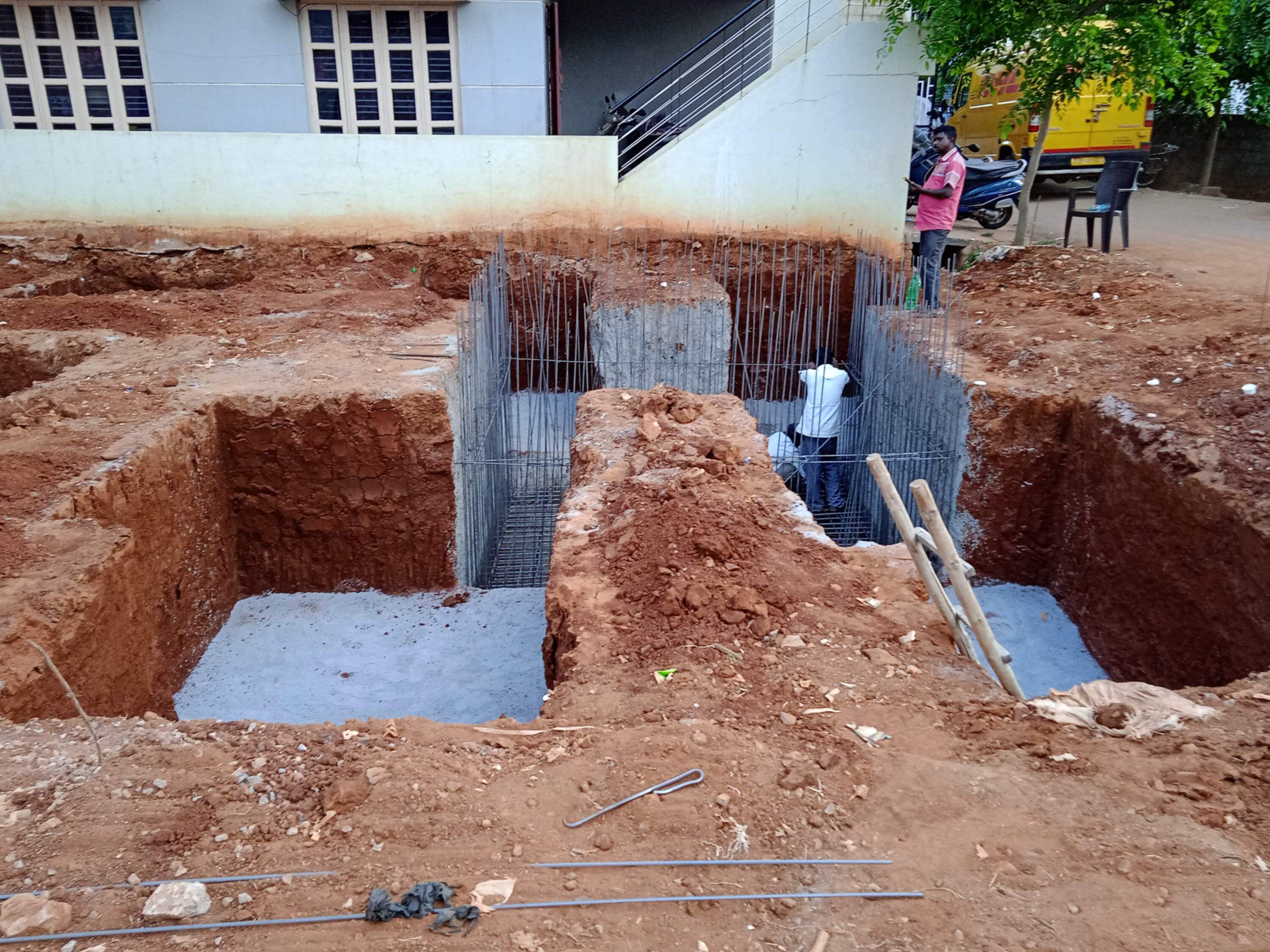 Coming back to the mistake we committed, we were asked to dig all pillar footings and sump footings till 5ft by engineer. Off course of the width of pillar footings varied as per column placements. We had pillar footings as wide as 6.5 feet x 6.5 feet for some pillars. When we were digging for sump, the sump guy asked if we can figure 2 feet more for sump as it can hold more water capacity. As our site was already 1.5 feet below ground level and we planned for 1.5 feet plinth level, plan was to create 8 ft sump spanning 10x10. However while digging ,we digger 2 ft below the other pillar footings. We did this without the knowledge or engineer. As engineer checked he said,this was a mistake and would result in settlement issues . So after checking various options we decided to fill the sump base with concrete jelly with chain box.a entire 2 feet base bed for sump.approximately 40k extra cost considering the jelly, cement ,msand and additional 2 feet steel.