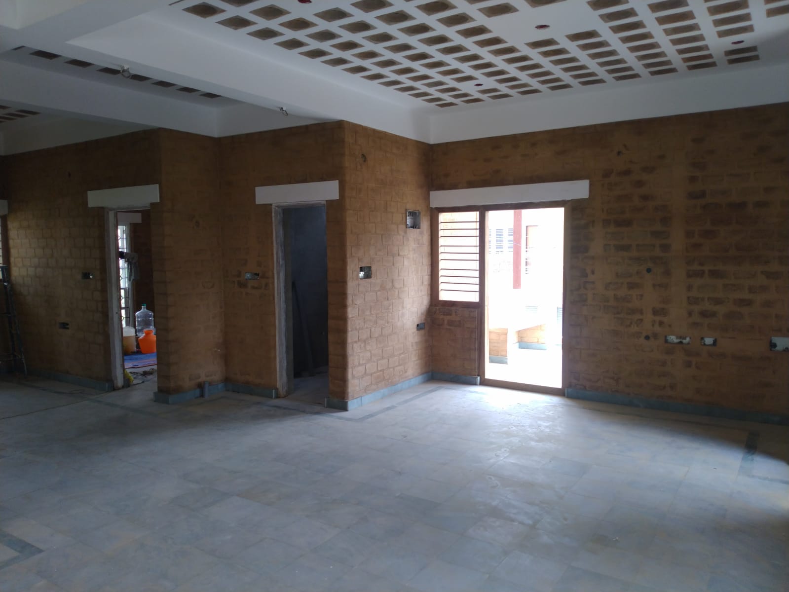 now Ceiling putty & painting work is going. As we have used the CSEB half thickness(2.5" inches) Bricks while making the Filler Slab RCC Molding, we can see a Semi "SPHERE" kind of Shape on the Ceiling. Similarly, many options available for Filler Slab molding like Clay Pots, Mangalore Tiles, Many Different Shaped Clay Tiles, .....etc.
