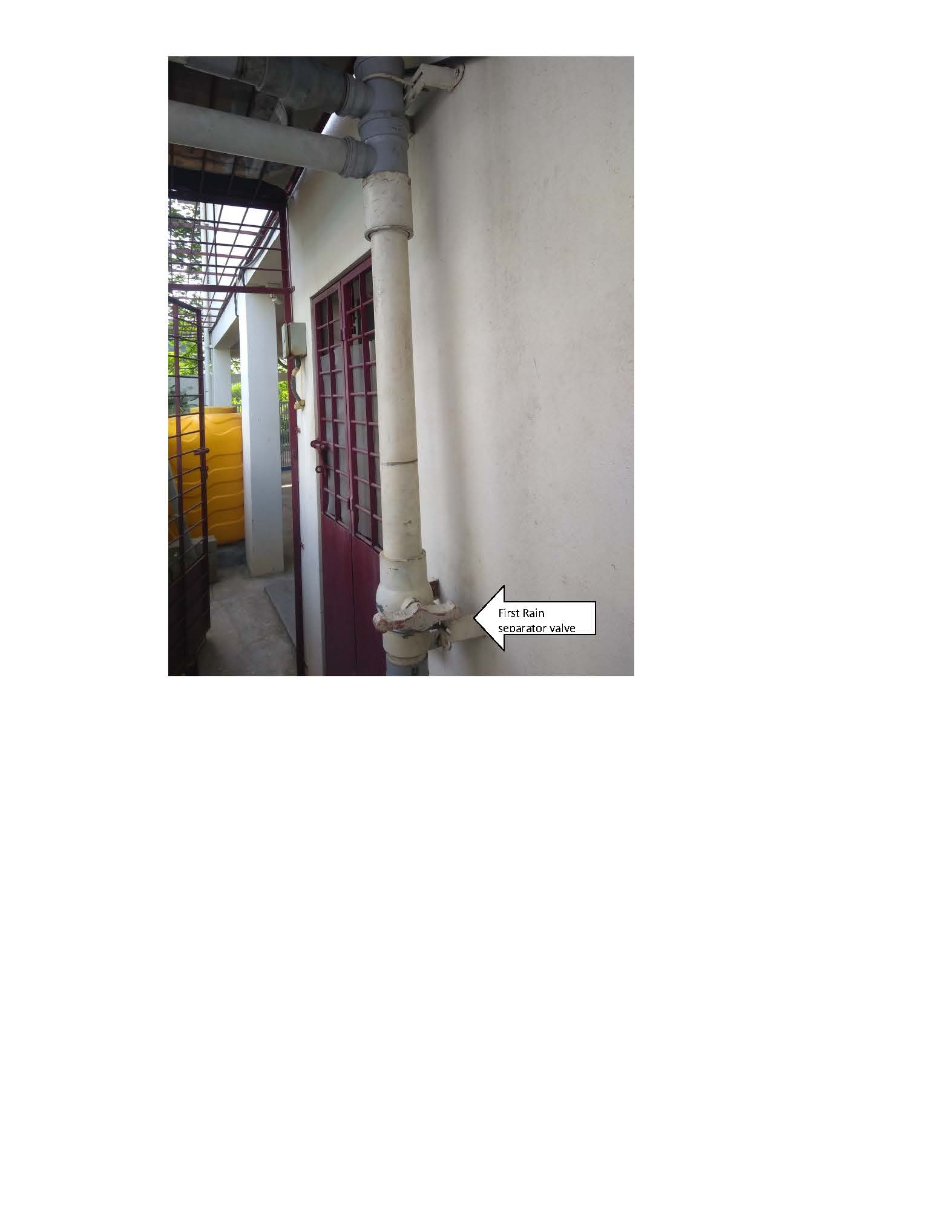 In my arrangement, above the first separator valve, a pipe branches out which leads to a tank to store unfiltered water, which is mainly used to water the plants and for other non-domestic usage. Here, the water which is otherwise flushed out through the first rain separator, is stored. On closing the valve leading to this storage, the water rises up the pipe.