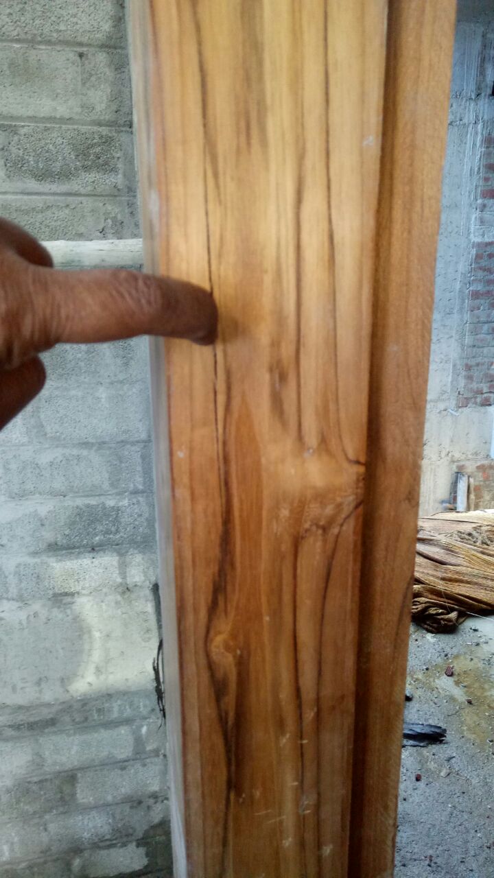 I have attached a photo of the cracks seen in teak main door frame.