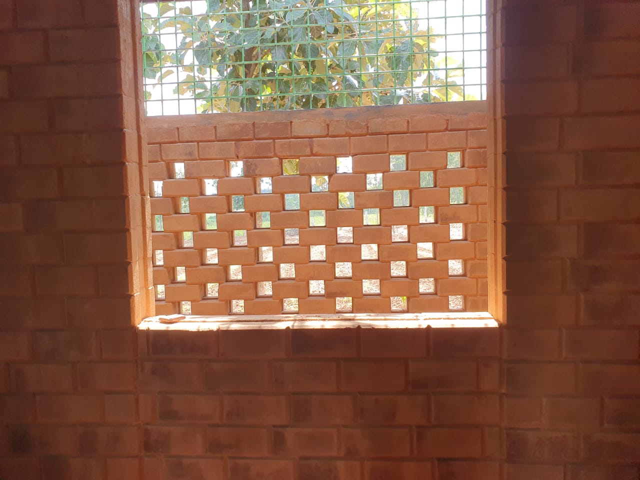 so pointing is basically you close the small gaps and also mask any stained by cleaning the bricks and applying a mixture of mud n cement (we used 5 portion of sieved mud+1 portion of cement)