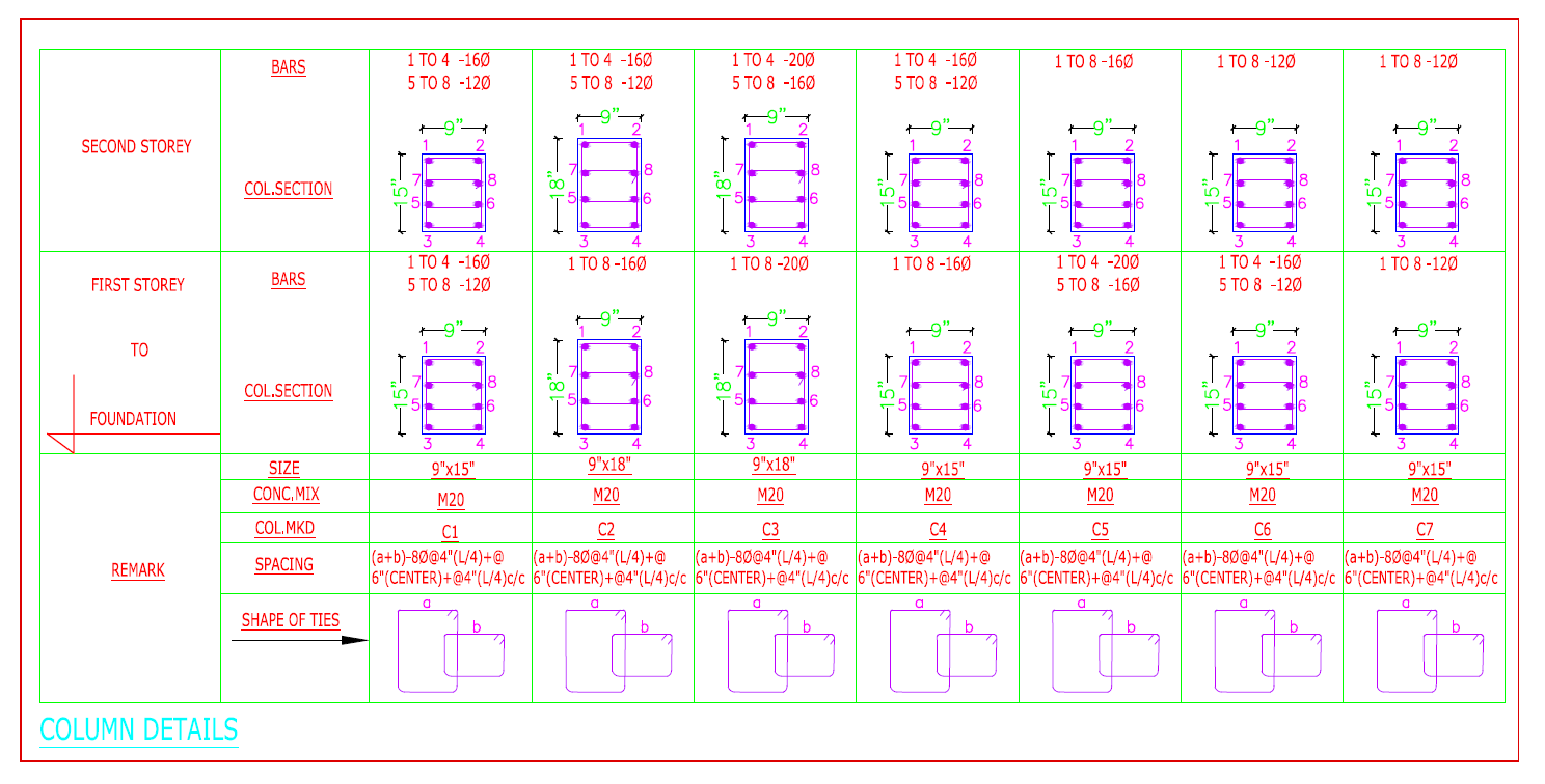 Attaching the gnd flr and first flr maps and the column specifications. All columns have 8 bars.