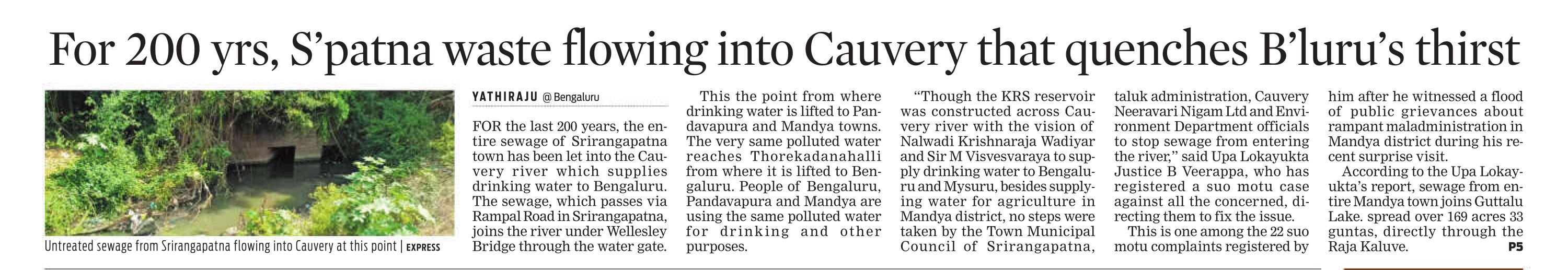 TREATED SEWAGE WATER SUPPLIED TO DEVANAHALLI AS POTABLE WATER –