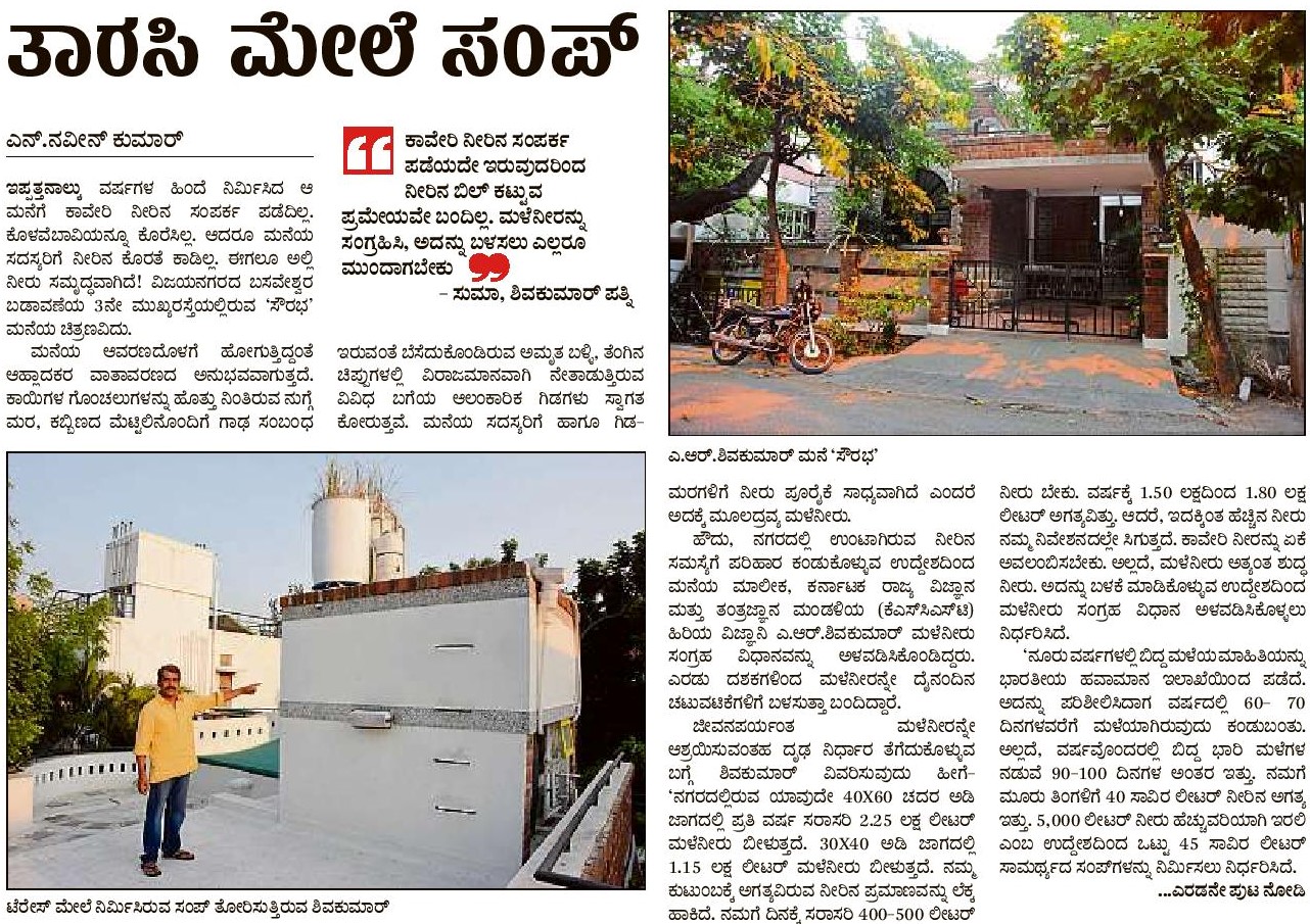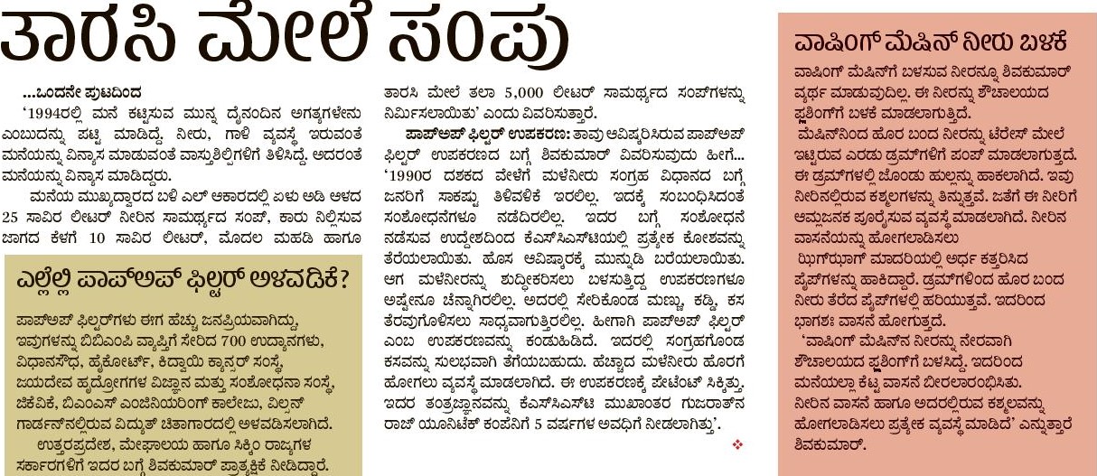 Mr. Shivakumar, Resident of Bangalore west, has not at all taken the BWSSB Connection and is using only the Rain water collected during the monsoon season for the entire 365 days for his entire family needs from the last 18 years. Why not others follow the same ?